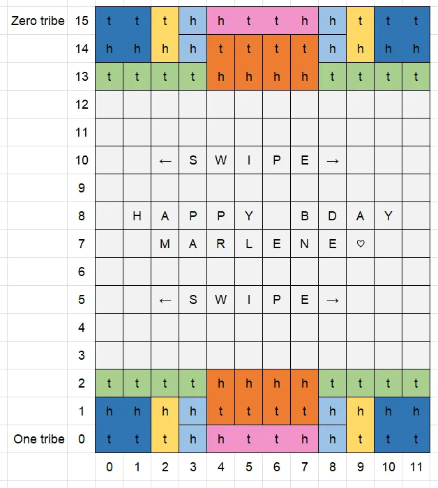 • tapping twice makes the hue jump to the next preset value, all of which my sister selected (TODO)